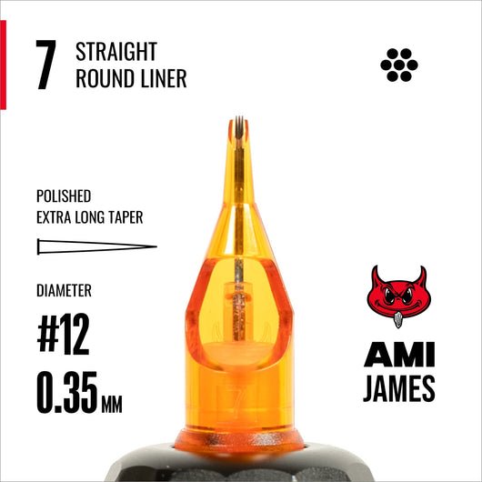 CAM x AMI JAMES Cartridges - Straight Round Liners - #12 (0.35mm) - 20/Box / 7 Straight Round Liner (20/Box)