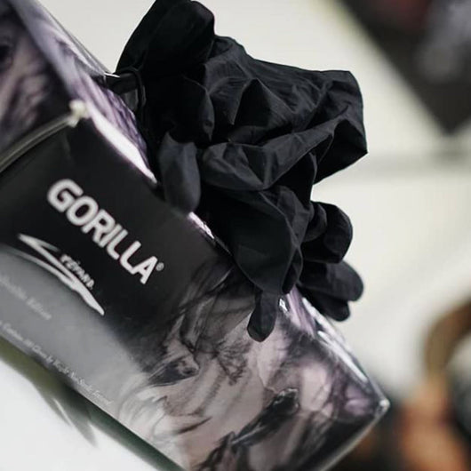 The industry's best black disposable glove. Gorilla's Black Latex Gloves are a favorite among tattoo artists, piercers, permanent cosmetic artists, and pretty much anyone who wears them. Designed and made with an ultra light material that promotes airflow throughout, these gloves are constructed to conform and fit perfectly, while still allowing your hands to breathe and feel cool during an intense tattoo session. Featuring a full textured surface for better grip, these black gloves not only look and feel great but also gets the job done right each and every time. Manufactured using an advanced chlorination process that helps reduce surface friction and tack on the interior of the glove, Gorilla's Latex Gloves are smooth, extremely durable, stretchy, and can be easily donned for any job or task. Try a pair today and see what all the hype is about!