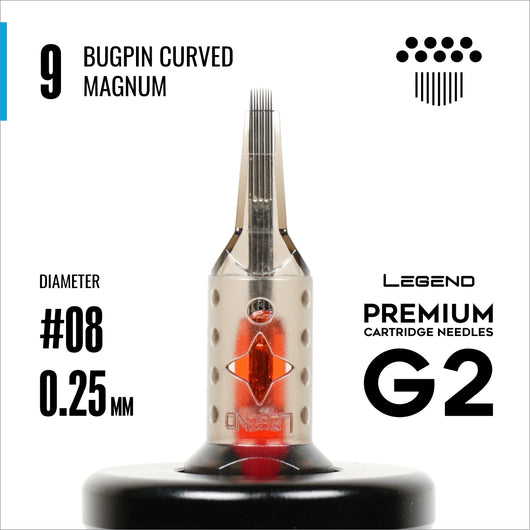 Legend Premium Cartridges G2 (2nd Gen) - Bugpin Curved Magnums - #8 (0.25mm) - 20/Box / 9 Bugpin Curved Magnum (20/Box) - 2nd Generation (G2) SKU: GCB9CM |