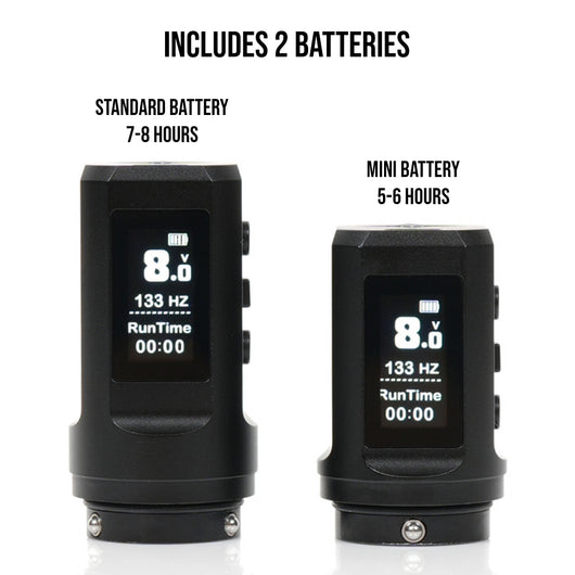 - Includes 2 Battery Packs: a Mini Battery (5-6 Hours) and a Standard Battery (7-8 Hours)