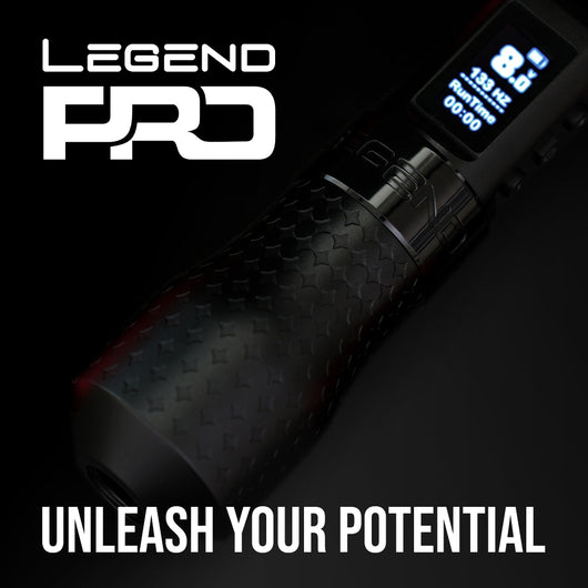 Shader: Ideal for smooth black and grey tattoos. Designed with a softer hitting motor, speed, and a 3.2mm stroke, the Legend Pro Shader is perfect for very fine linework (using 1RL - 3RL), pepper shading, and any tattoos needing a softer touch.